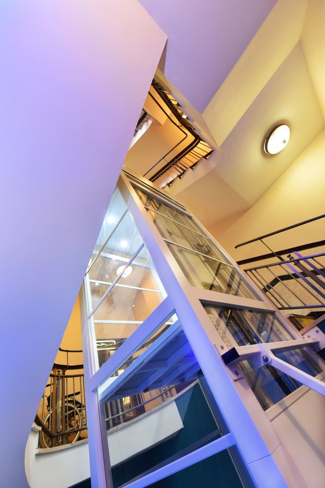 Not only does the 22 glass-panel platform lift complement its setting, it also offers 360 degree visibility throughout every journey. This full perspective of location and range of movement is reassuring for many people.