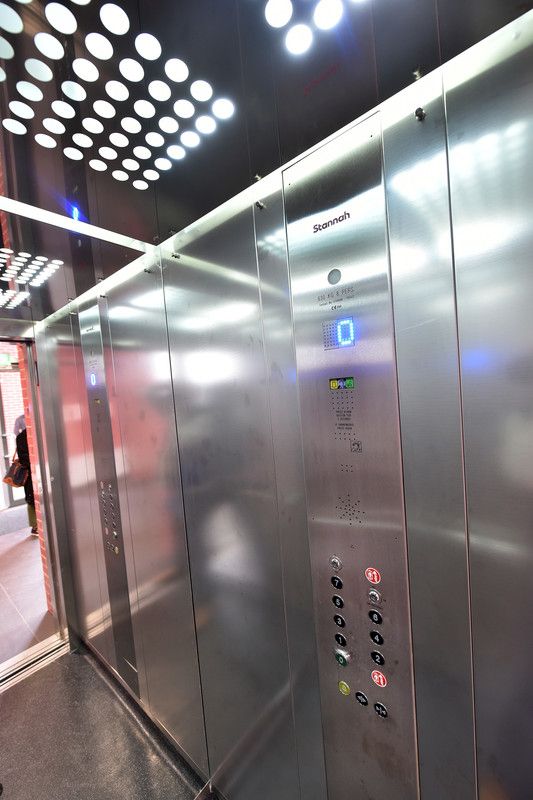 To match the heavy duty demand of this environment, the nine 8-person lifts are fitted with higher-grade stainless steel lift cars and Dewhurst push-button controls. Eight are traction, without motor rooms, and one is hydraulic, with a motor room. All the lifts have been installed with a range of options, with a mix of vandal-resistant categories 1 and 2. Two models are equipped as firefighter lifts.