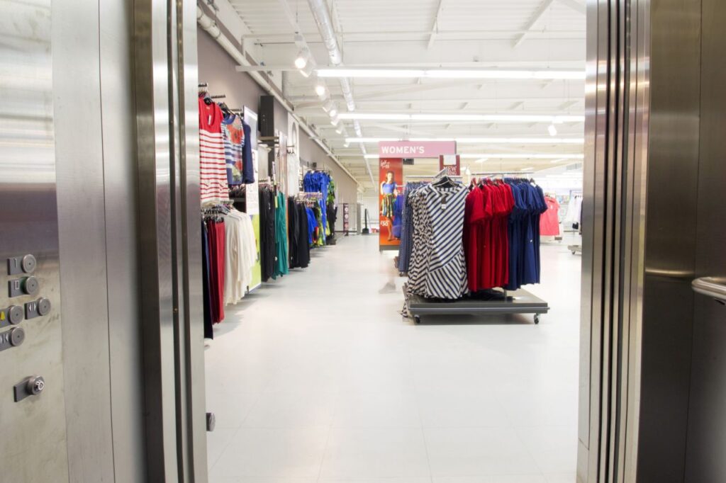 Located back-of-house, the 2500kg, hydraulic-drive ‘F1-type’ goods/passenger lift provides secure, efficient movement for staff and Sainsbury’s TU fashion range between the ground-floor warehouse and 1st floor TU department. Manual car and landing shutter gates, measuring 1800mm wide x 2100mm high, ensure load stability and safety during travel at a contract speed of 0.5mps. Designed to withstand the demands of vigorous retail environments, this is the first of several ‘F1-type’ goods/passenger lift installations by Stannah.
