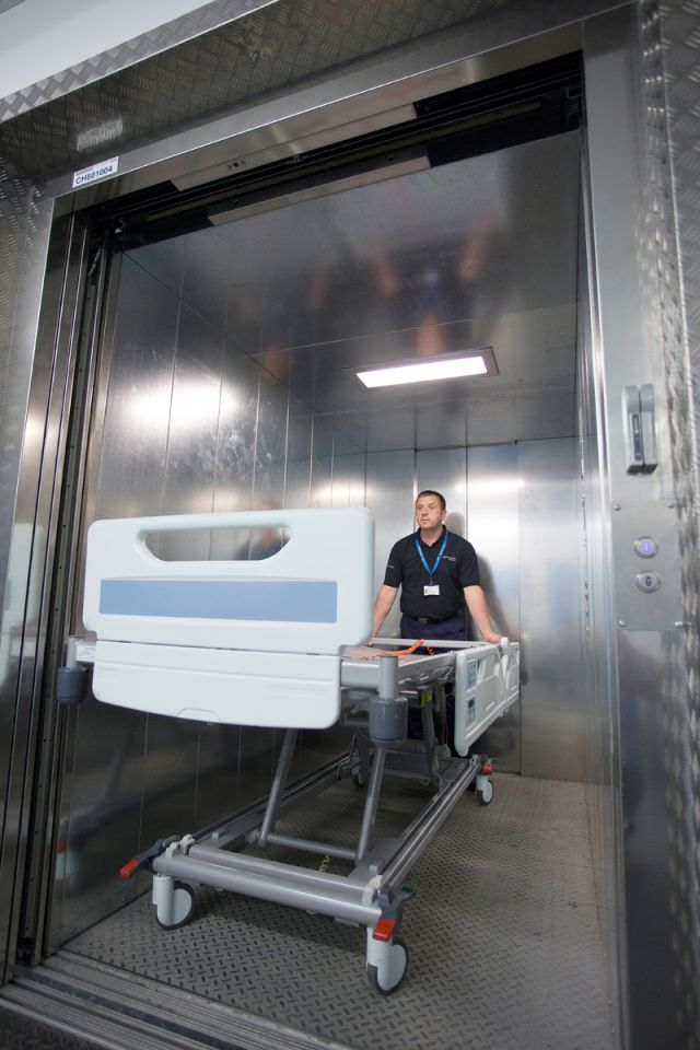 Stannah provided this unique solution to meet the specific lift requirements of the hospital. This industrial-duty, hydraulic-drive goods passenger lift is responsible for the movement of patient beds and supplies for King’s College Hospital – an acute care and major teaching facility on the same complex. It allows goods to be accompanied by up to two people whilst the lift travels between two floors at a speed of 0.140 m/s – a distance of 3225mm.