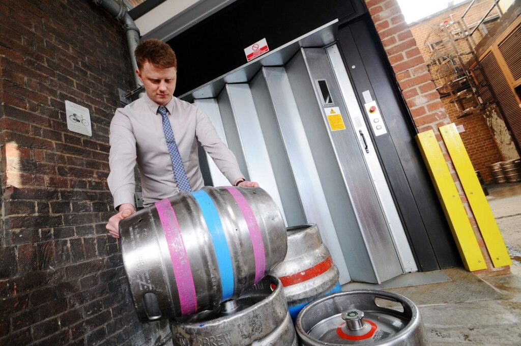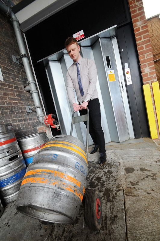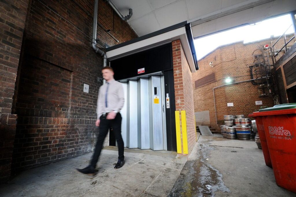 Running a Wetherspoons pub is thirsty work, but a Stannah Goodsmaster CD Plus (chain drive) goods attendant lift makes light work of it in the Leeds City Station outlet of this real-ale chain pub in West Yorkshire.