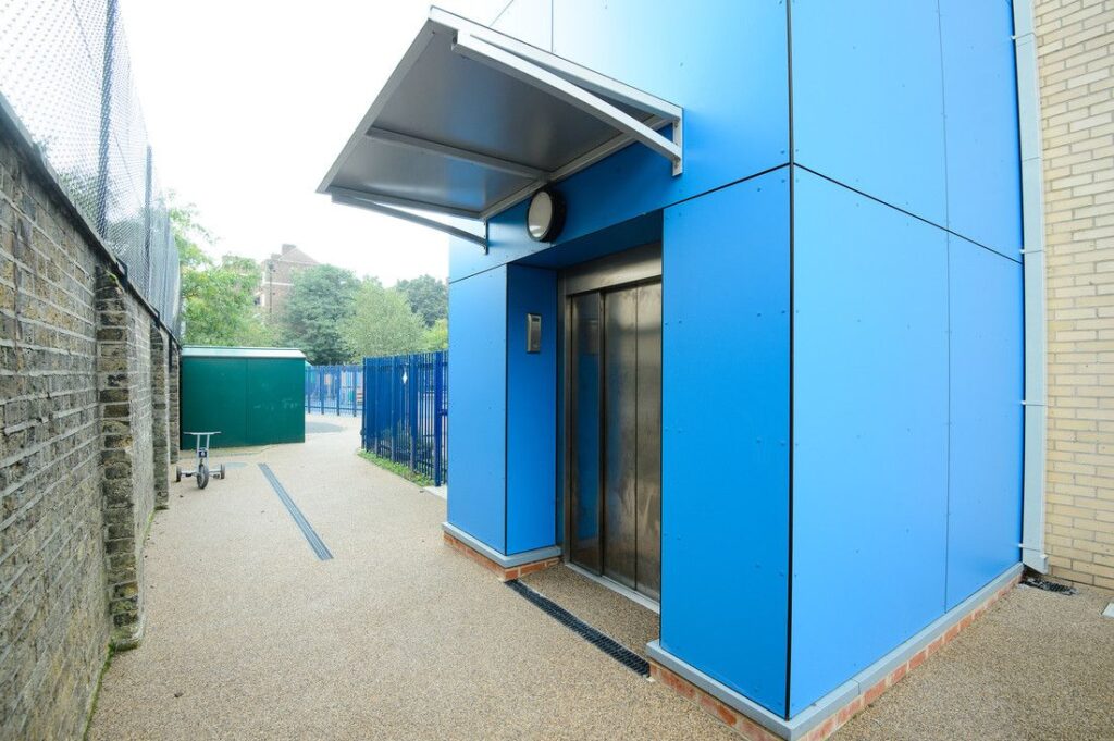 This 26-person lift plays a key part in the navigational lifeline of the school – a portal that welcomes children every day, connects them between outside and inside, and between two floors dedicated to learning, communication, independence and community links.