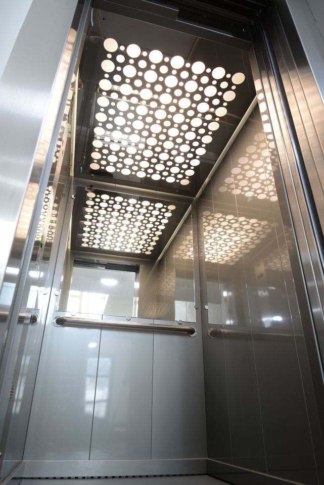 Designed to complement the development’s light, airy aesthetic, the lifts are finished in brushed satin stainless steel with grey sparkle flooring, bubble ceilings, silver-grey car walls and silver half-height rear mirrors. The motor rooms are located separately, in cabinets next to the lift doors, making access and maintenance a breeze.