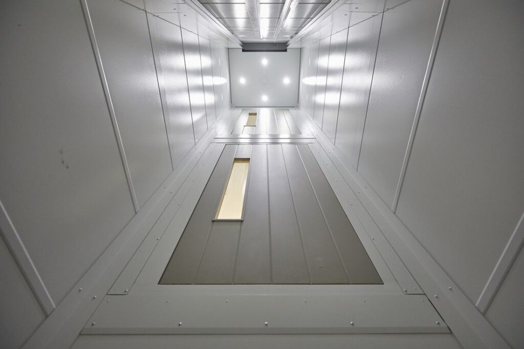 Adjusted door openings and lintel heights on one floor further ensured that the lift fitted its allotted aperture.