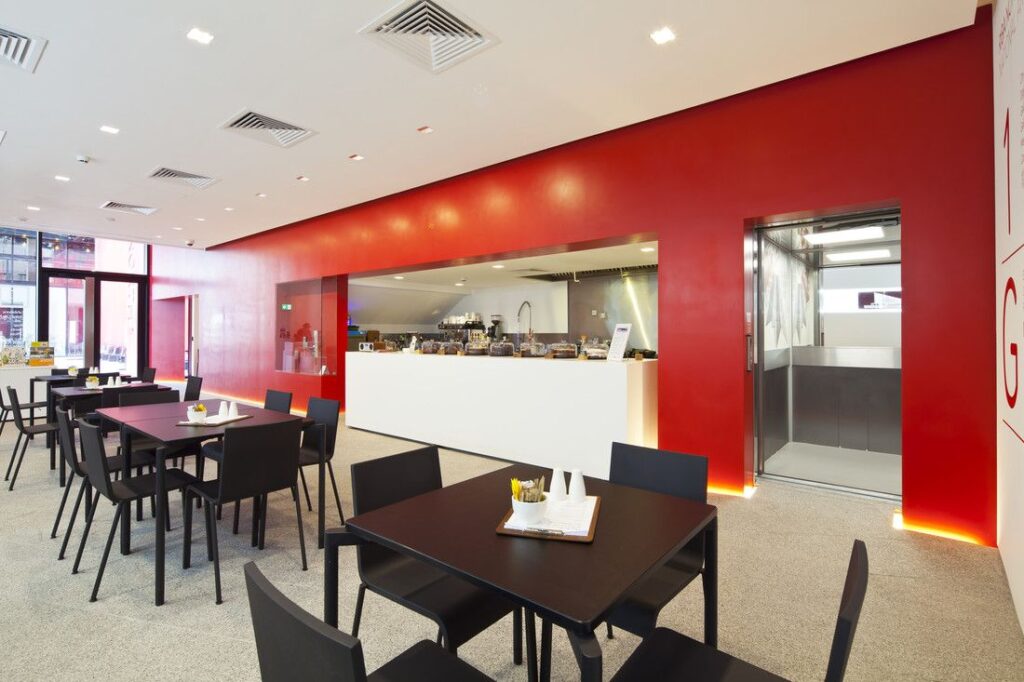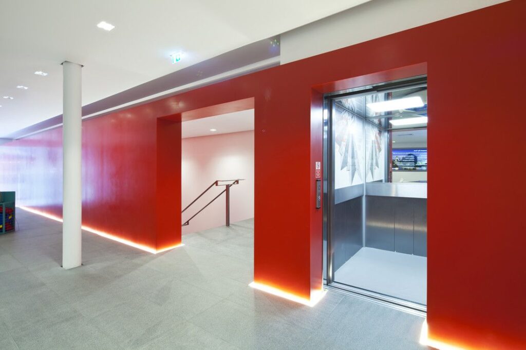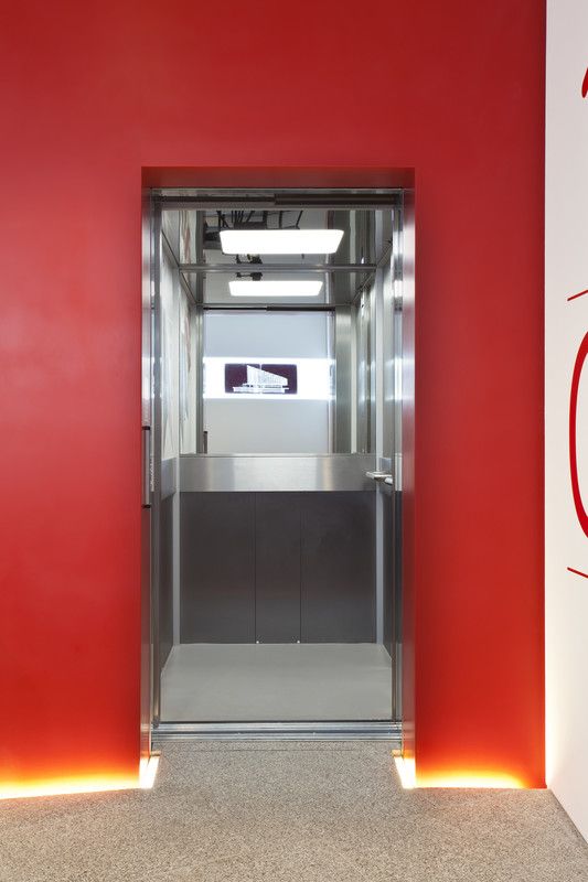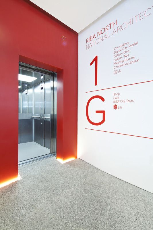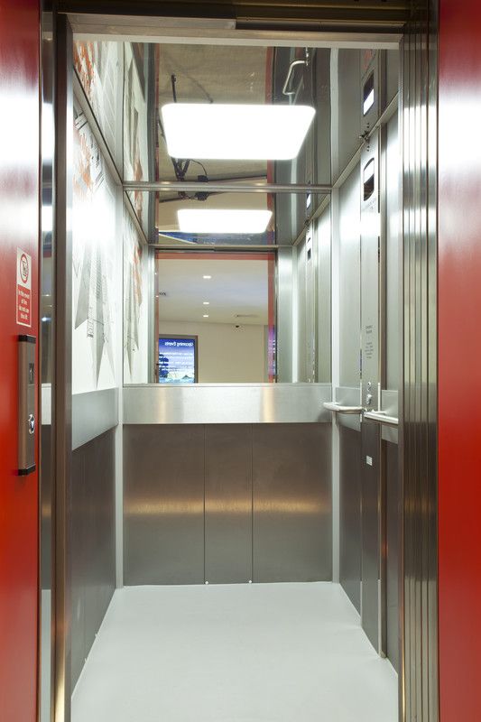 Conveniently located adjacent to the stairs, the Piccolo complements RIBA’s minimalist design aesthetic of red, black, grey and white. Finished throughout in satin stainless steel, the lift is accessed by two-panel, side-opening doors. The interior features bespoke graphics, a half-height rear mirror, grab rails, downlit ceiling and emergency call system.