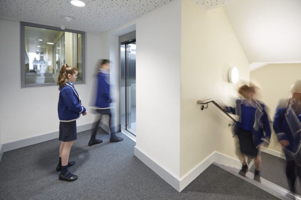 Thanks to its adjacent-entry doors, a 13-person Stannah Xtralift was the passenger lift of choice in Tormead School for girls in Guildford, Surrey. The new lift means easy movement of people and equipment over four floors in this leading independent day school for girls aged 4 – 18.