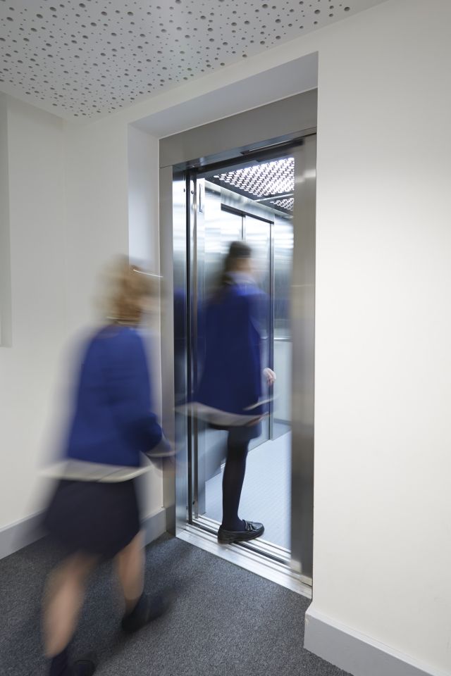 The lift’s tough finish also plays a key role in delivering a reliable service: the car and landing doors are finished in satin stainless steel complemented by a grey, easy-clean, laminated interior, half-height, rear-wall mirror and an anti-bacterial, grey floor – perfect for the heavy use the school will undoubtedly provide.