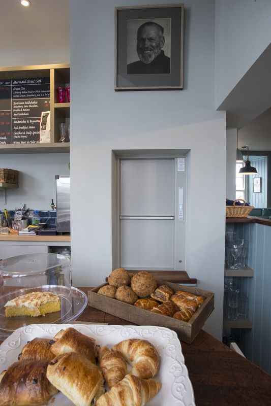 A Stannah Microlift 50B bottom drive service lift (dumbwaiter) has updated service in the Mermaid Street Café, part of the Old Borough Arms, a recently refurbished, Grade II listed guest house in Rye, East Sussex.
