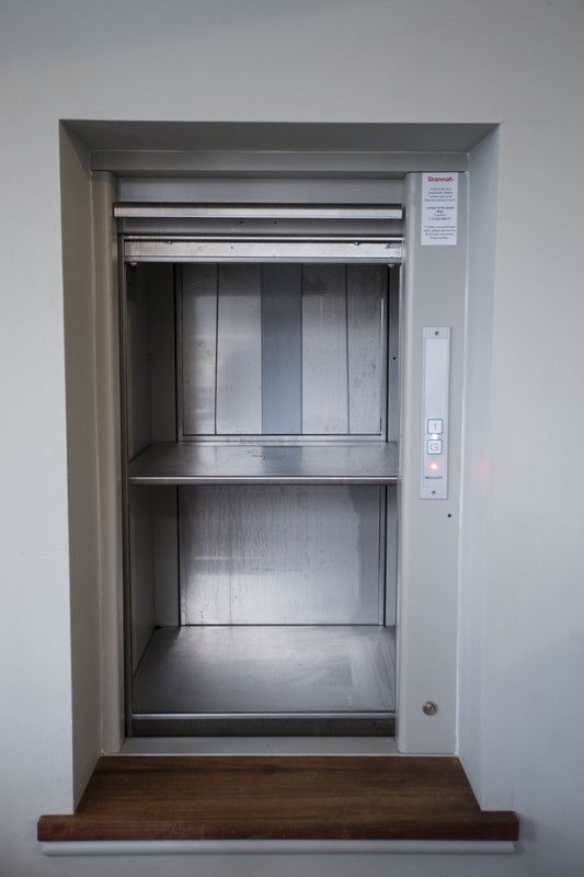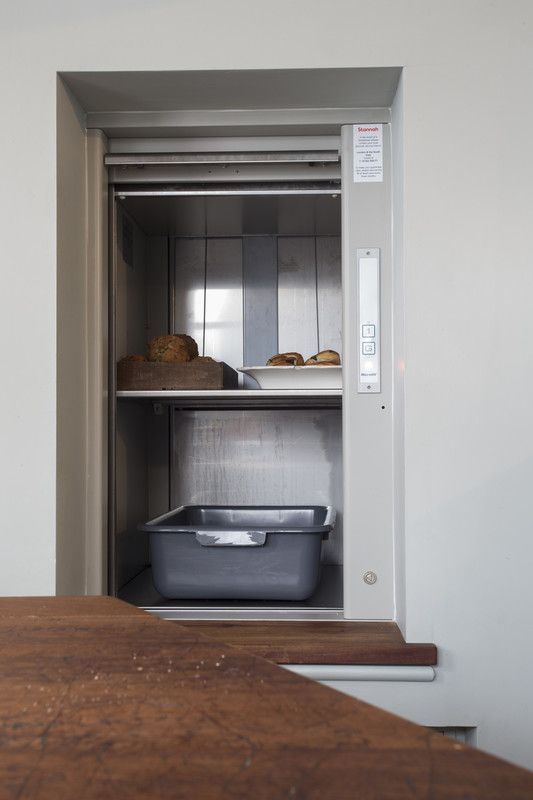 Supplied in a galvanised, structure-supported frame, the dumb waiter does not require a separate motor room or load-bearing lift shaft. The motor unit is located at the bottom of the shaft, which allows installation where headroom is restricted – one of the deciding factors for specifying a Stannah Microlift 50B, as Tim Duffie, Director of Manning Duffie Architects, explains: