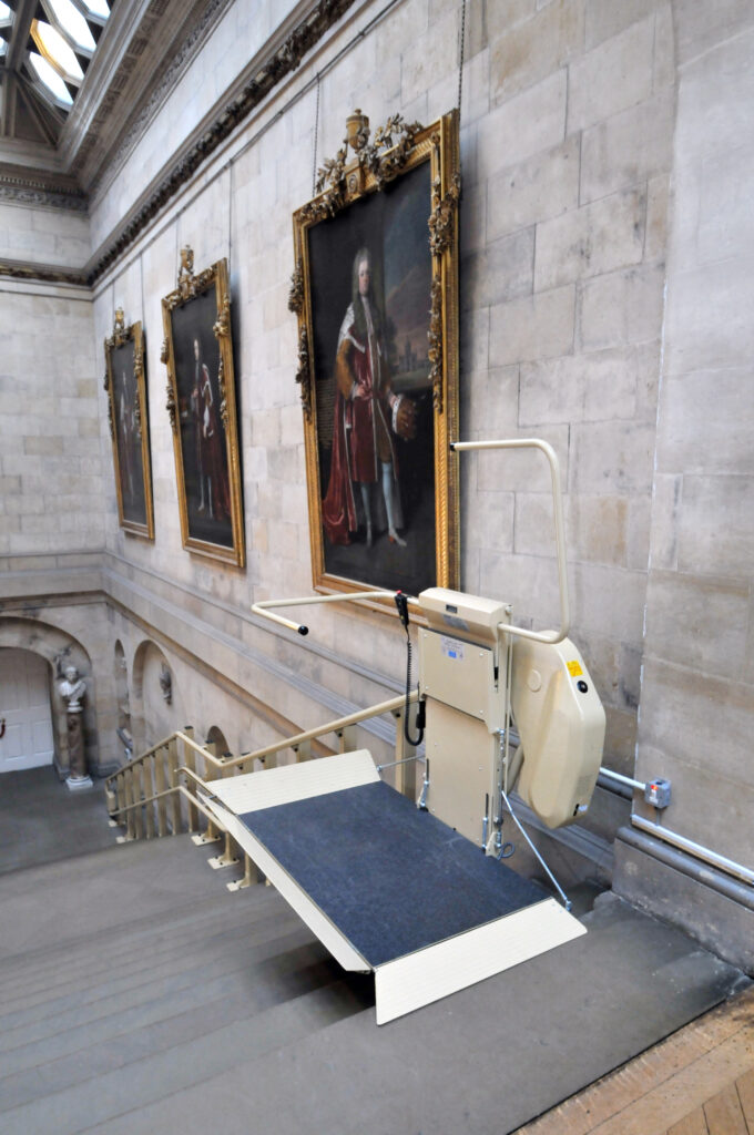 Provides independent and safe access to a wheelchair/seated user over a single flight of straight stairs.
